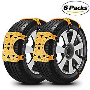 This offering from Qomolo takes the multi-piece approach to snow chains, coming in a pack of six or eight sections that you can distribute across your wheels depending on your needs. Each section has studs and steel spikes for good grip and is designed to be used with alloy wheels without scratching.