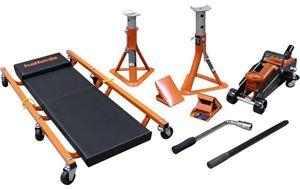 The jack in the boot is an emergency measure, designed to be used to quickly change a wheel. Nothing more, nothing less. It’s not for prolonged use, so it’s daft to have one in your workshop arsenal. Instead, get a proper jack, and while you’re at it, get some decent axle stands, too. Don’t prop your pride and joy up on wood or tyres. This set from Halfords has it all, so you can jack up in safety and even get under the car thanks to the creeper.